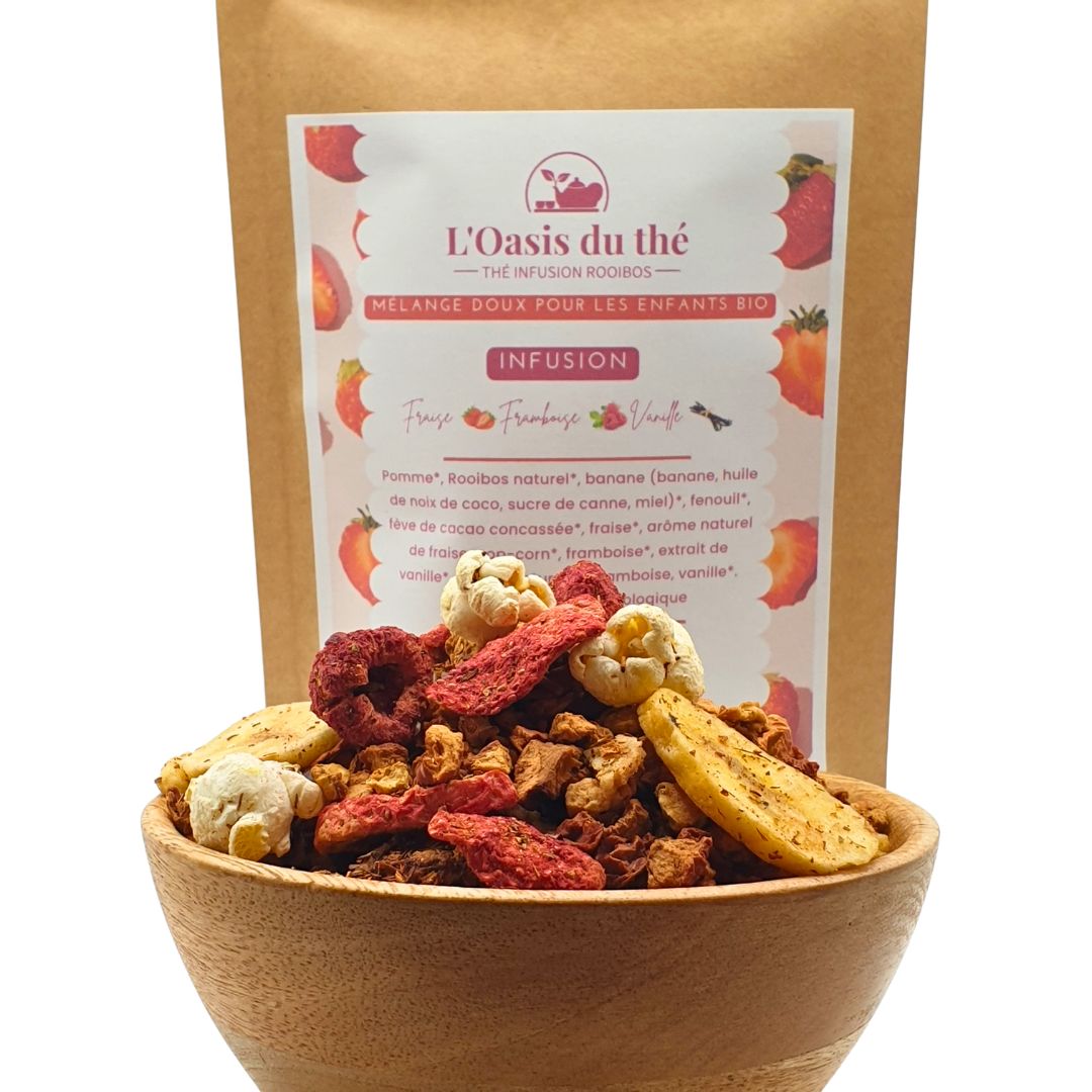 Mélange doux pour les enfants – Tisane enfant saveur fraise, framboise & vanille